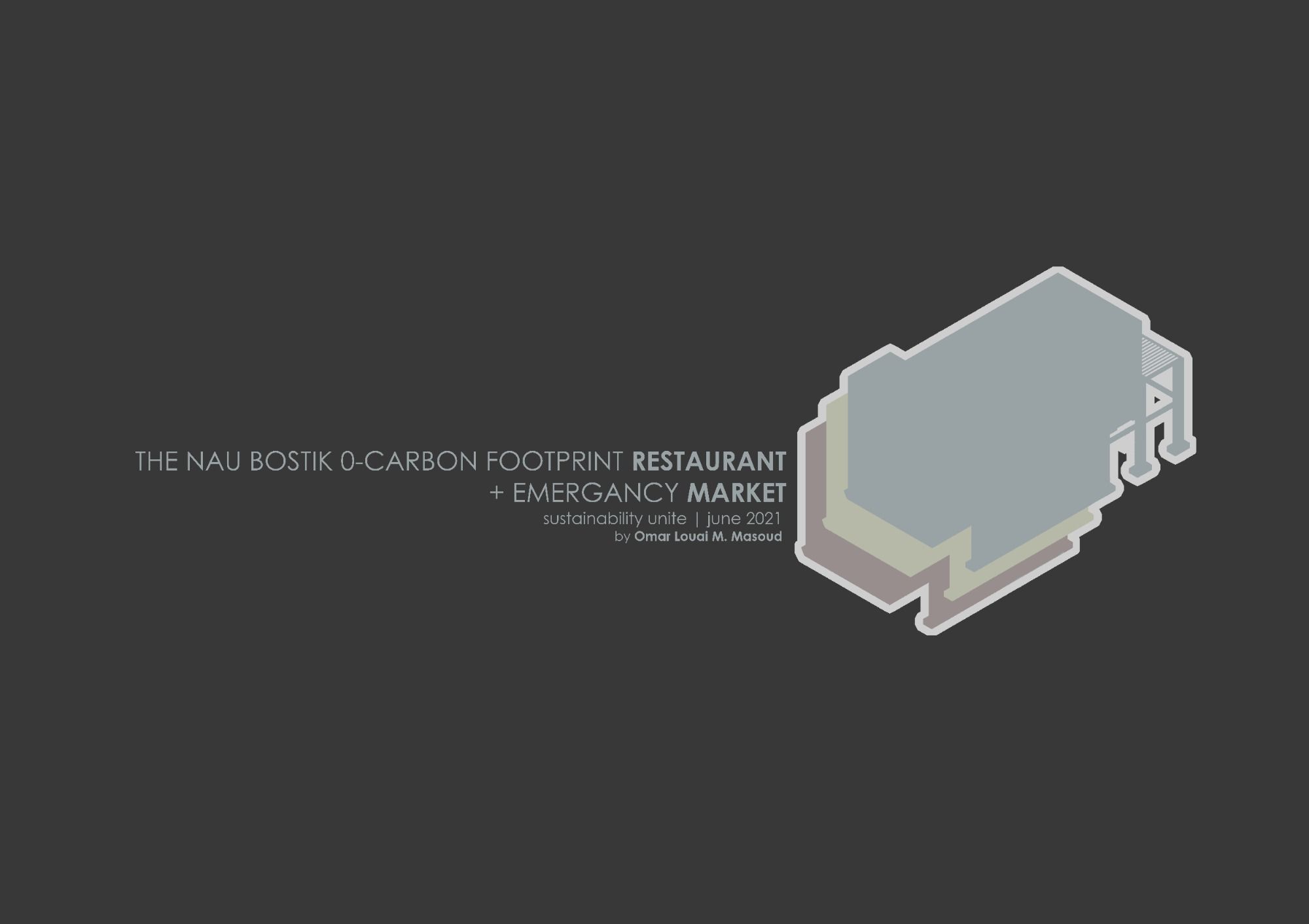 The zero-carbon footprint restaurant is one of a collective of buildings striving to achieve maximum sustainability both in construction and lifetime use. The project is curated by three main parts. firstly, the ground floor lays the emergency market which is open air and adaptable according to the needs of the building, secondly also on the ground floor is the main restaurant in kitchen that serves locally sourced food and especially supplied buy a green roof garden, and lastly is the first-floor café and terrace dining area. The restaurant is a modular project with prefabricated elements that follow a 5 by 5 meter grid. The main element are the one or two meter rammed earth walls. The buildings of most of its solar end climate issues by passive systems made up of adaptable architectural elements.